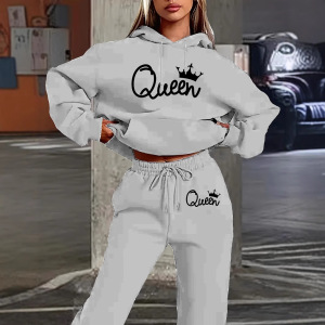 厂家2025爆款跨境欧美女装字母印花连帽卫衣时尚休闲长裤套装批发