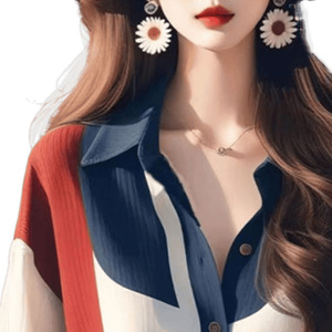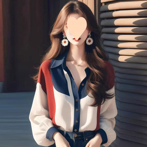 春秋季新款女装冷淡系高级感独特好看宽松上衣撞色灯笼袖衬衫