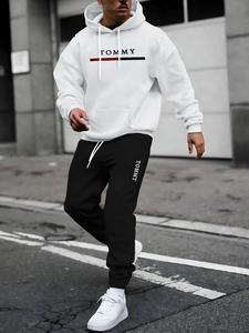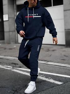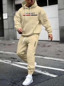 2025 新しいメンズプルオーバーフード付きスウェットシャツプリントロゴレタールーズスウェットシャツジャケット長袖ズボンスーツ