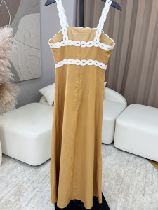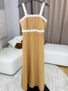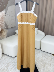 Zhong Chuxiと同じスタイルのベージュフレンチウエストサスペンダードレス夏