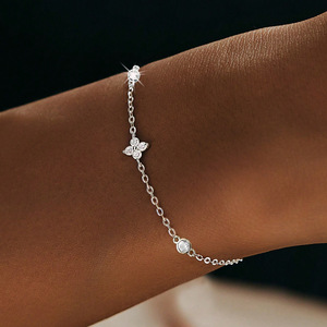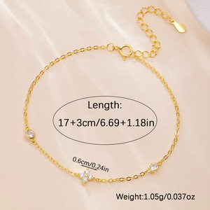 925 シルバーの甘くて絶妙な四つ葉の花のジルコン ブレスレット、毎日のホリデー ギフトに最適、オールシーズン着用可能
