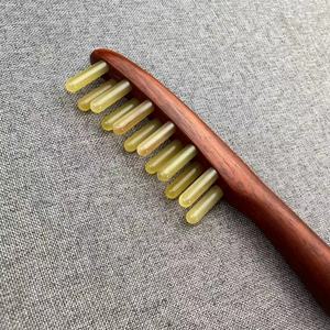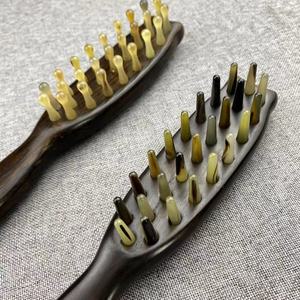 紫檀フクロウ ハンドル付き角 25 歯マッサージコーム