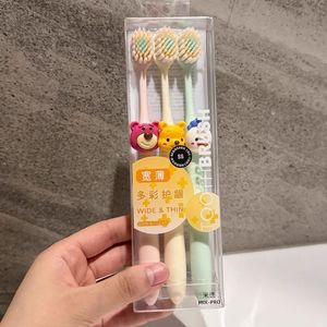 イチゴのクマの頭 + くまのプーさんの頭 + アヒルの子の頭 カラフルな歯ブラシ 3 個パック