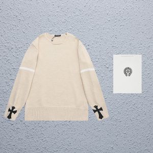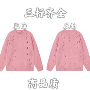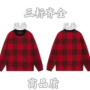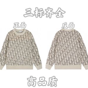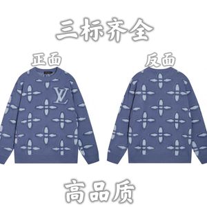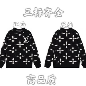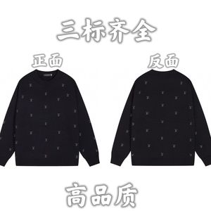 文字ジャカード総柄ロゴ入りラウンドネックニットウールセーター 男女兼用 カジュアルトップス 長袖 厚手 暖かい