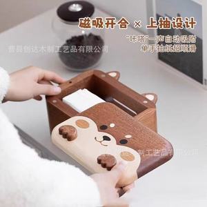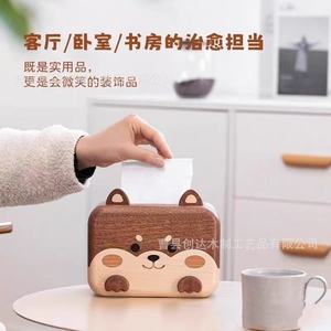 木製ティッシュ収納ボックス漫画柴犬スタイルティッシュボックス家庭用衛生ティッシュボックスデスクトップコーヒーテーブルティッシュボックス