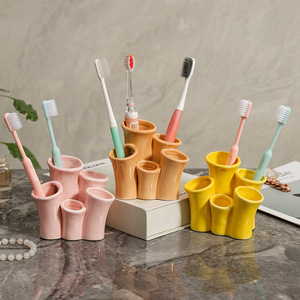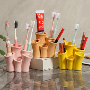 高颜值多功能牙刷架家用卫生间陶瓷牙膏牙刷置物架全家福牙刷收纳