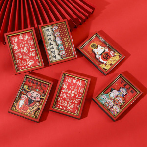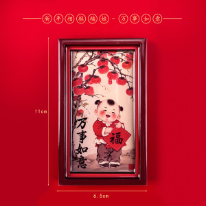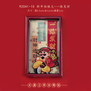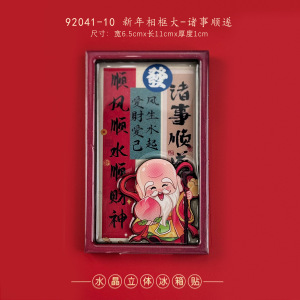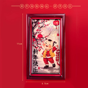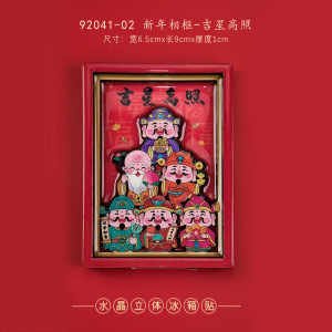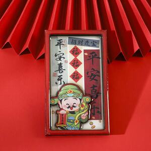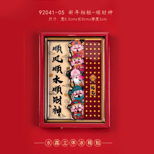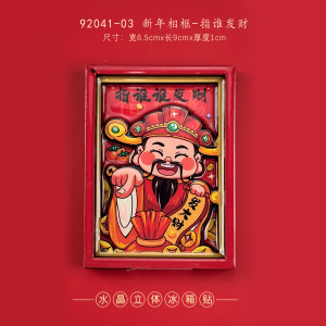 新年冷蔵庫マグネットお祝い中国風新年の雰囲気新しい家の装飾フォトフレーム富の神平和と喜び磁気木製冷蔵庫マグネット