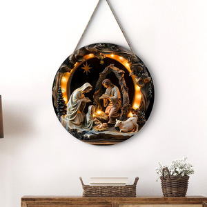 在庫あり木製キリスト降誕洗礼ラウンドサイン寝室リビングルームドアサイン装飾壁掛けホーム装飾