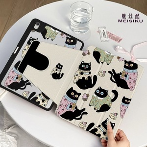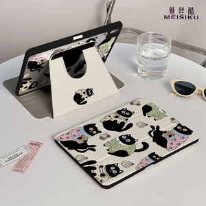 720°三折款ipad保护套 带笔槽三折支架可旋转 可爱黑猫 一件代发