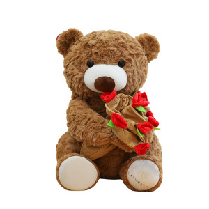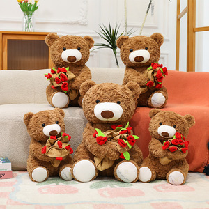 磁気で吸着するバラの花を持った小さなクマのぬいぐるみ、テディベア人形、女の子の誕生日プレゼント、交換可能、越境で人気商品