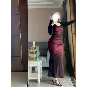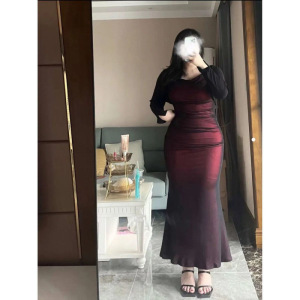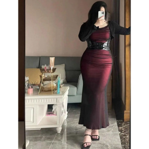 プラスサイズスーツ 100kg サスペンダードレスフィッシュテールスカートファットガール純粋な欲望セクシーなプリーツ痩身長袖カーディガン