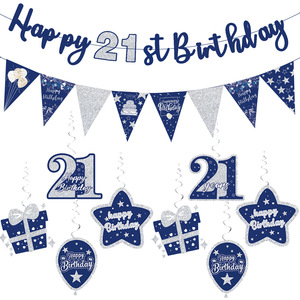Amazon 新しい 16 歳と 21 歳のインクブルーのテーマ 1 歳のギフトパーティー パーティー ペナント バナー装飾