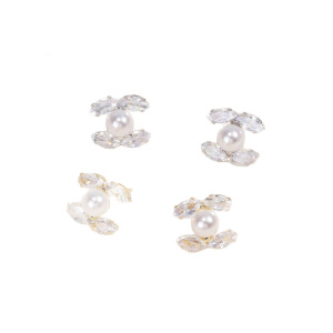 フレンチダブルCパールイヤリング、女性用の小さな香りのイヤリング、多用途の軽い高級本物の金メッキイヤリング、卸売