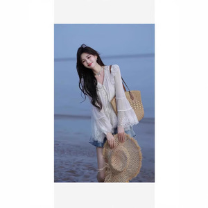 2025年夏の新しい女性用韓国風衣装セット、雰囲気のあるレースステッチシャツ、デニムフレア
