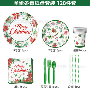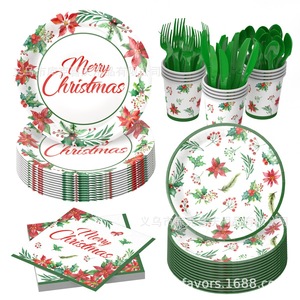 2025 クリスマスウィンターグリーンセントテーマパーティー装飾クリスマス使い捨て紙皿紙コップティッシュ食器セット