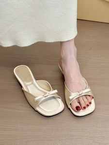 フレンチサテンシルバー!女性用の気質サテンスクエアトゥワンストラップウェッジサンダル、リボンオープントゥサンダル