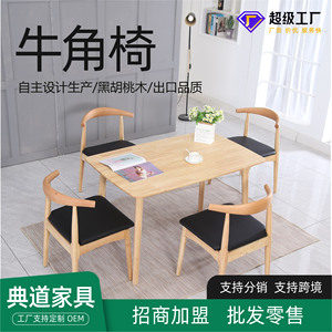 無垢材のダイニングチェア家庭用背もたれブラックウォールナットダイニングチェアモダンなミニマリストアームチェアオフィスティーテーブルホーンチェア