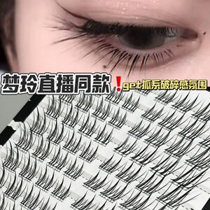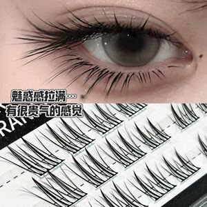 小夢狐接着剤不要つけまつげ、斜めに伸びる透明な狐系黒軸まつげ、ベビーカーブ、自然で濃密、写真撮影に最適なつけまつげ