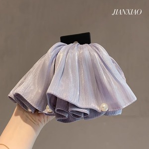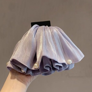 ネットセレブのシンプルな無地の後頭部ヘアクリップ、高級パール気質のプリーツハイポニーテールヘアクリップヘッドバンド