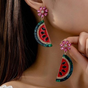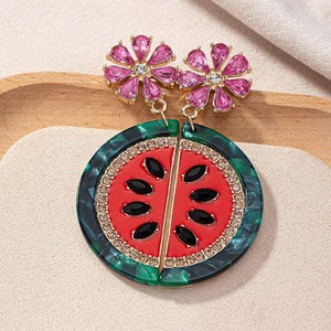 ヨーロッパとアメリカのクロスボーダーのかわいい、ファッショナブルで多用途なダイヤモンドがちりばめられたオイルドロップフラワースイカレディースイヤリング