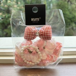愛のハート型ラインストーン付き、赤いリボンと白いチュールスカート