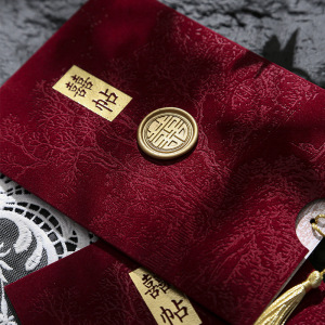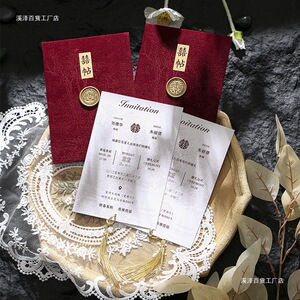 请帖结婚中式喜帖原创火漆酒红流苏中国风婚礼邀请函