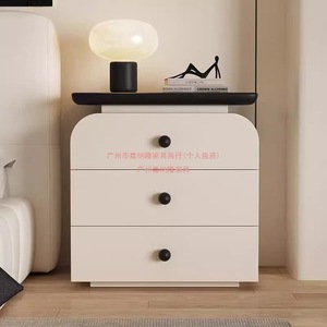 2025新款免安装中古奶油风极简现代高级感收纳储物卧室床头柜