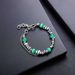 S067-A(チタンスチールグリーンビーズブレスレット)
