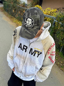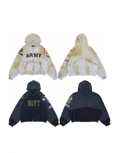 GRAILZ美式重磅假两件拼接重工水洗做旧拉链连帽卫衣男女外套潮牌