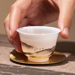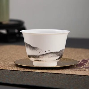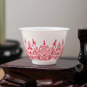 古风茶杯加厚硬质一次性茶杯透明耐高温办公室招待茶具青花瓷茶杯