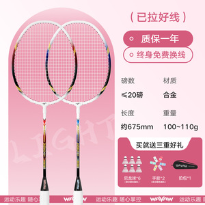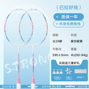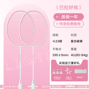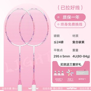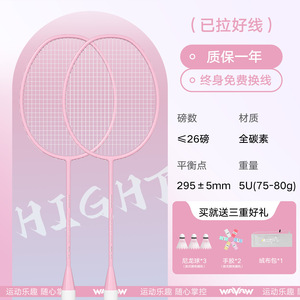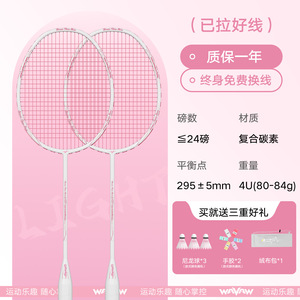 ダブルラケット - W90 ホワイト + ピンク [コンポジットカーボン 4U] ボール 3 個 + ベルベットバッグ + ハンドグルー 2 個 + ラケットヘッドステッカー 2 枚 - 完成したラケット