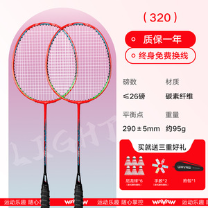 320カーボン2本フリー6ボール/ラケットバッグ/ハンドグルー/アンチブレイクラケットヘッドステッカー完成品ラケット