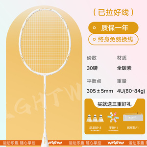 ワンピース - 小型スチールキャノンホワイト [フルカーボン 4U] には、耐久性のあるナイロンボール 3 個 + グレーのベルベットバッグ + ハンドグルー * 1 + ラケットヘッドステッカー * 1 - 完成したラケットが付属します。