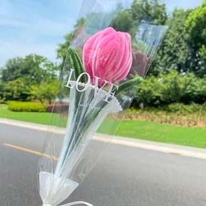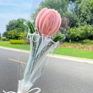 完成したチューリップのシングルブーケ、家の装飾、ツイストスティック織り、中国のバレンタインデー、教師の日のギフト
