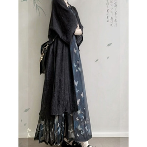 プラスサイズの漢服ファットmm 100kg 刺繍入り宋半袖刺繍ロングシャツ改良カーディガン新しい中国風デイリーサマー