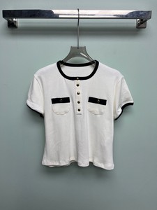 2025 春夏新作 Nanyou オートクチュール半袖ポケットトップボトリングシャツスタイルビーズラウンドネックカラーブロックステッチ