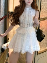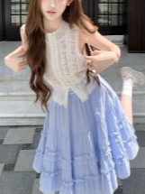 Chishan 25/ss ホワイトペアウォーター手作り中空テンセルスプライシングトップブルーストライプ耳スカートスーツ