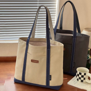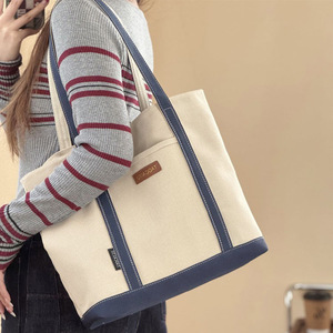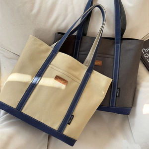 オリジナルデザイン日本と韓国の文学通勤ポリエステルスプライシングキャンバストートファッションシンプルカジュアル学生ショルダーバッグ
