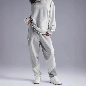 A洛家同款撞色卫衣连帽拼接上衣男女加绒宽松卫衣休闲束脚裤套装