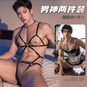 男性のセクシーな下着、セクシーな誘惑、恥ずかしいシースルー拘束ジャンプスーツ、ベッドパッションシャツ、男性用