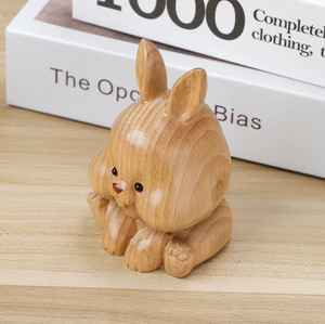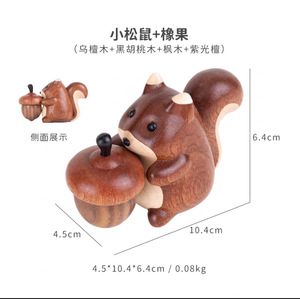 小松鼠磁吸橡果小白兔元宝狗车摆件实木雕刻桌面家居创意摆件礼物