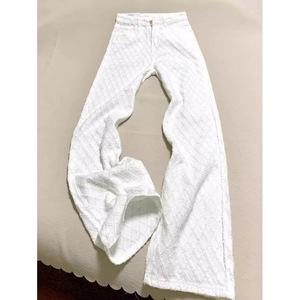 春の新作 Xiaoxiangfeng ハイウエスト ストレート ジーンズ レディース ゆったり スリム 多用途 ホワイト ジャカード パンツ インスタイル
