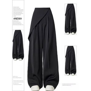 不規則なスーツワイドレッグパンツ女性のための 2025 新しい韓国スタイル夏のハイエンドドレープストレートパンツカジュアルパンツ