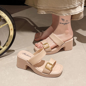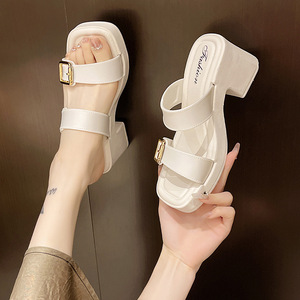 夏の外出用の女性用ファッショナブルなハイヒールスリッパ、滑り止めスリッパ、厚底カジュアル防水プラットフォーム、高さを高めるスリッパ卸売