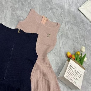 25ss 重工業エレガントな明るいシルクノースリーブニットハイウエストプリーツドレス A ラインショートスカート女性の夏の新製品