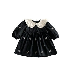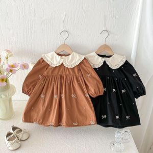 女の子ドレス秋韓国風ラペルレトロ刺繍ベビー女の子プリンセス春と秋の子供服スカート