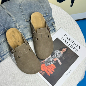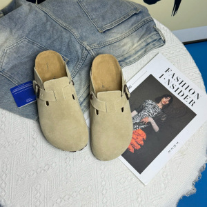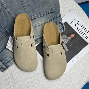 本革ビルケンシュトック靴女性の夏のアウターウェア 2025 新しいレトロ怠惰な包頭厚底コルクスリッポンハーフスリッパ