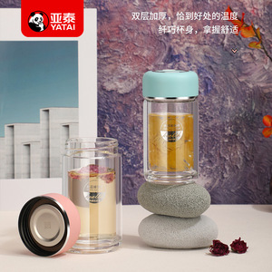 亚泰高硼硅双层玻璃水杯女士泡茶清新可爱小巧便携女士杯子高颜值
