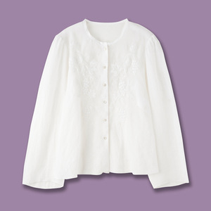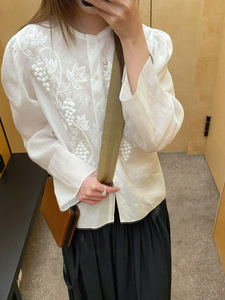 25 夏の新刺繍ラミーシャツ白中空ブドウ中国風の女性のシャツラウンドネックヘビーデューティシングルブレスト