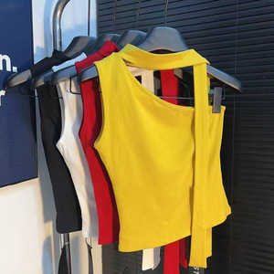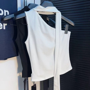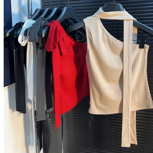 Yiding 2025 新しいアメリカンレトロホットガールホルターネック斜め肩小さなキャミソールアウターデザインニッチトップ